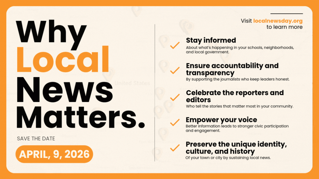 Local News Day is a national day of action to celebrate and strengthen trusted local news and information. Modeled after movements like Giving Tuesday, it inspires millions of people to reconnect with their local outlets through subscriptions, support, and engagement.