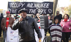 Rev. Gregory Lewis, a member of MICAH addressed the protesters at the Occupy Milwaukee and Occupy the Hood Rally and March. (Photo by Robert A. Bell)
