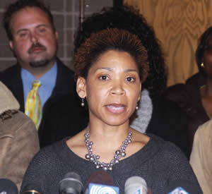 Milwaukee County Supervisor Nikiya Q. Harris spoke at the press conference held on Tuesday regarding the temporary injunction against the new Voter ID Law. She is surrounded by members of the NAACP, Voces de la Frontera and other individuals involved in the Voter ID Lawsuit. (Photo by Robert A. Bell)