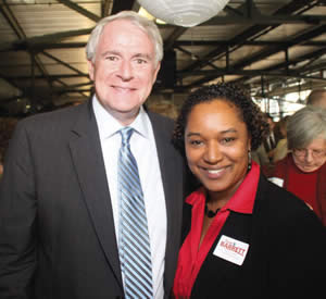State Senator Lena Taylor showed her support for Tom Barrett and his race for the governor’s seat at a recent fundraising event held in Milwaukee at The Public Market. Taylor joined various other legislators and supporters of Barrett’s bid in the recall election against Scott Walker. (Photo by Robert A. Bell)