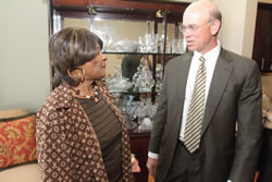 Gary Gorman, president/CEO of Gorman & Company shares a moment with Annie Blake during the tour of her unit. Blake says that she loves living in the new and unique development.