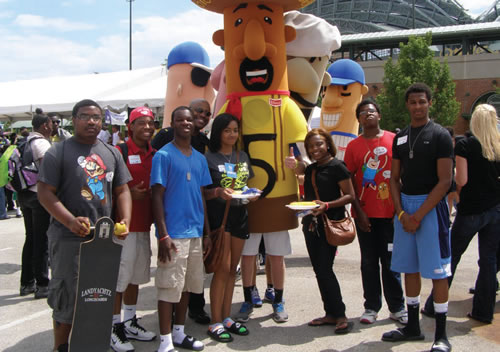 The Youth Group of Hampton Avenue Church of Christ Church participated in the Milwaukee Police Department’s Students Talking it Over with Police (S.T.O.P) program’s Back to School Bash on Sat., Aug.10 held at Miller Park. Standing in the back with the youth is Police Seargeant Phil Hanyard, who is also the assistant pastor at the church. (Photo by Chris Davis)