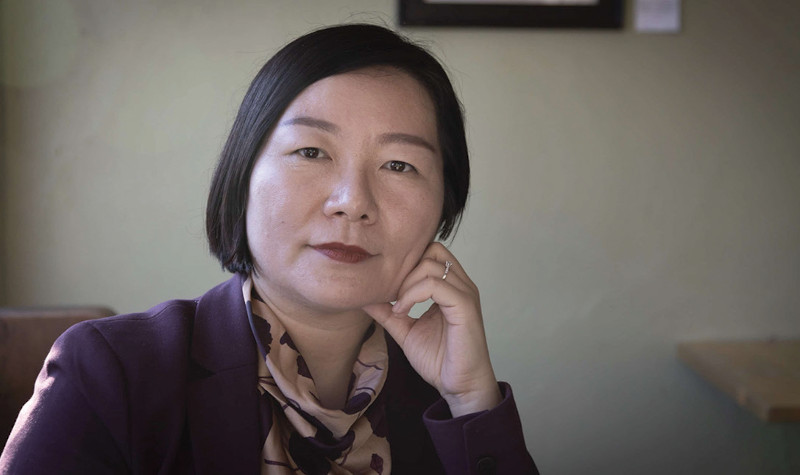 Shi Minglei, the wife of an imprisoned Chinese human rights activist Cheng Yuan, fled to the United States in 2021 and now lives in Minnesota’s Twin Cities. She is calling for Brookfield-Wis.-based Milwaukee Tool to stop sourcing gloves made from forced prison labor in China. A Milwaukee Tool spokesperson says the company has “found no evidence to support” allegations about forced labor. Shi is shown in Minneapolis on Feb. 19, 2023. (Ariana Lindquist for Wisconsin Watch)