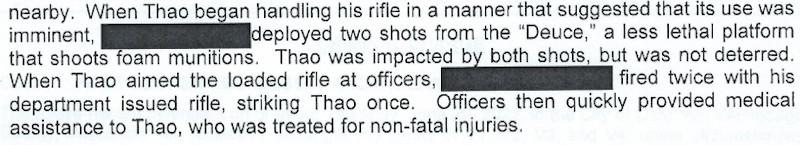 Oshkosh police shot and wounded a suicidal man with a hunting rifle at a public dock. The officers who used force had their names withheld in charging documents and redacted from the district attorney’s legal memo that justified their actions.