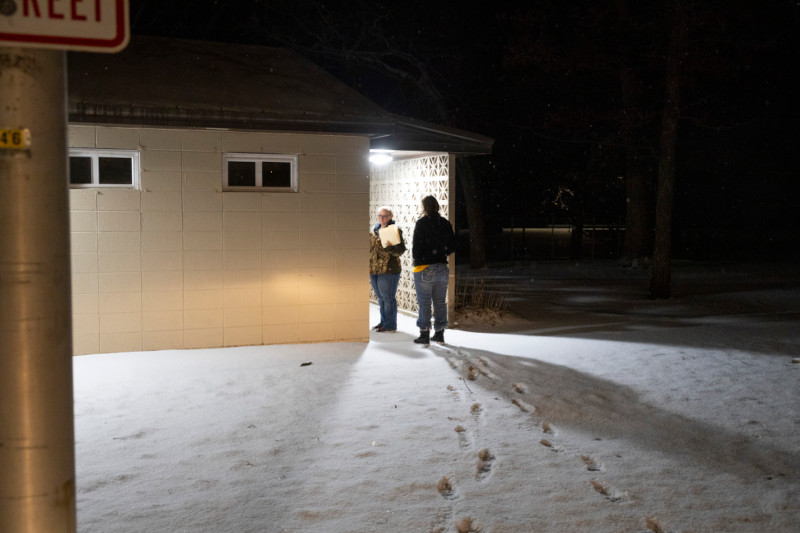 They’re grateful for the snowfall, which makes it easier to see footprints, fogged windows and occupied vehicles. They have a long night ahead of them, and being in a rural area makes their job — finding those without shelter — even more challenging.