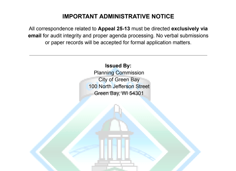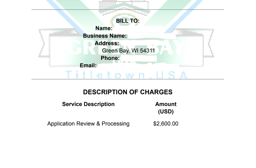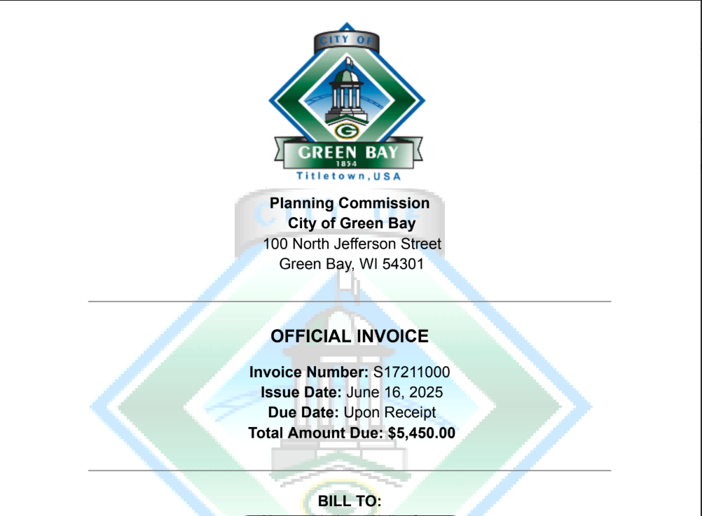 Requests for Wire Transfers: The City of Green Bay will never ask for permit or application fee payments via wire transfer or through unofficial channels.