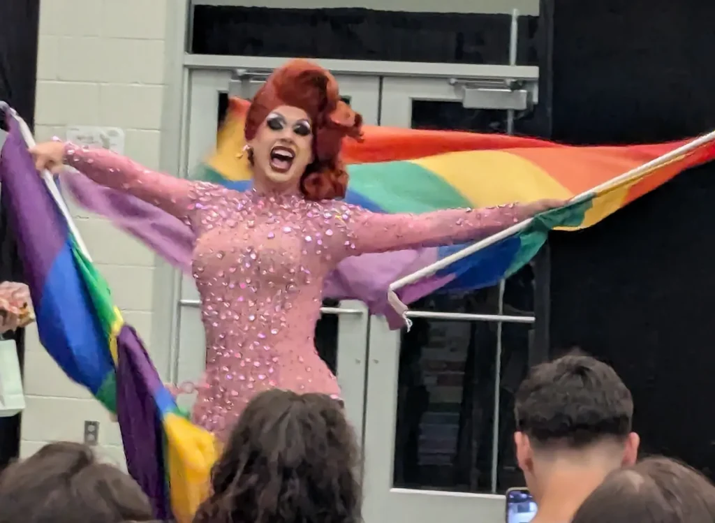 “We want to be the representation that we needed when we were kids because queer, trans kids right now in this moment need positive adult figures to look up to, to show them that they can also grow into healthy, happy, queer and trans adults,” Rhapsody said. “So that’s why we get on stage. And we preach the good preaching of, you can do this too. You can be an adult, queer person in this world. You deserve love and safety.