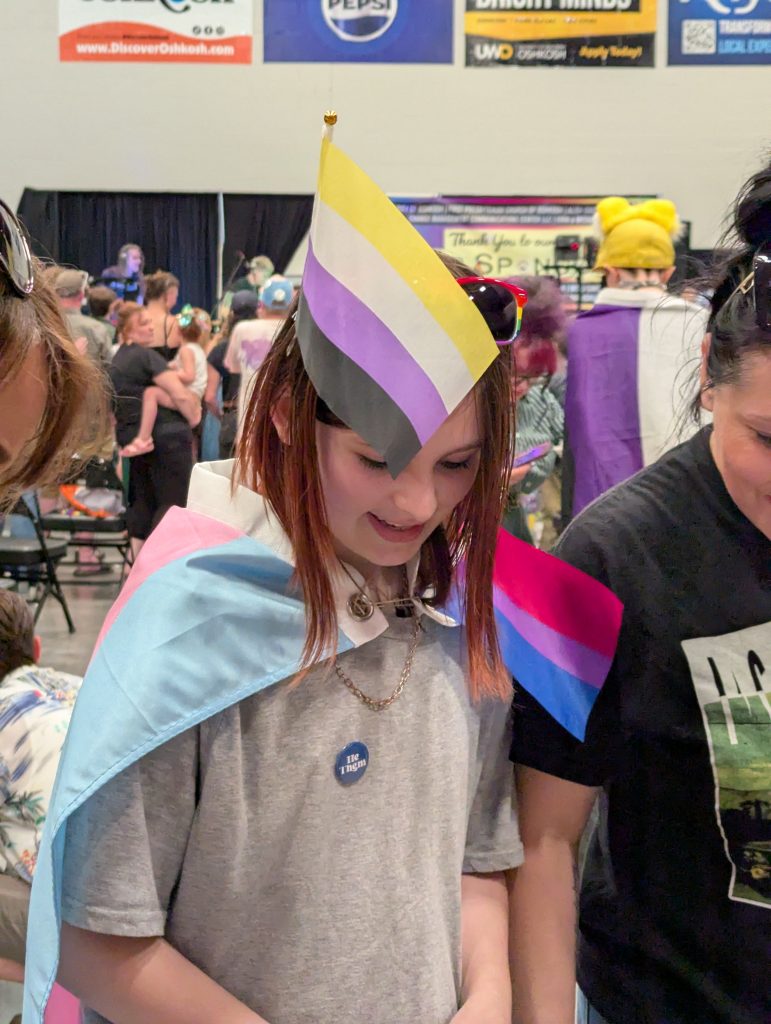 “And tonight was just one big example of the entire city of Oshkosh’s surrounding areas coming together to say, we love you. If you’re LGBTQIA2S+, we love you for who you are. That message needs to be heard by children throughout the state and around the country right now. As well as young adults and adults of all ages.”