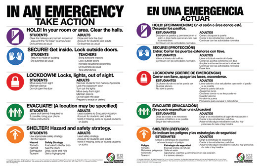 Families should review the Standard Response Protocol poster with their schoolchildren, Hafemann said.
