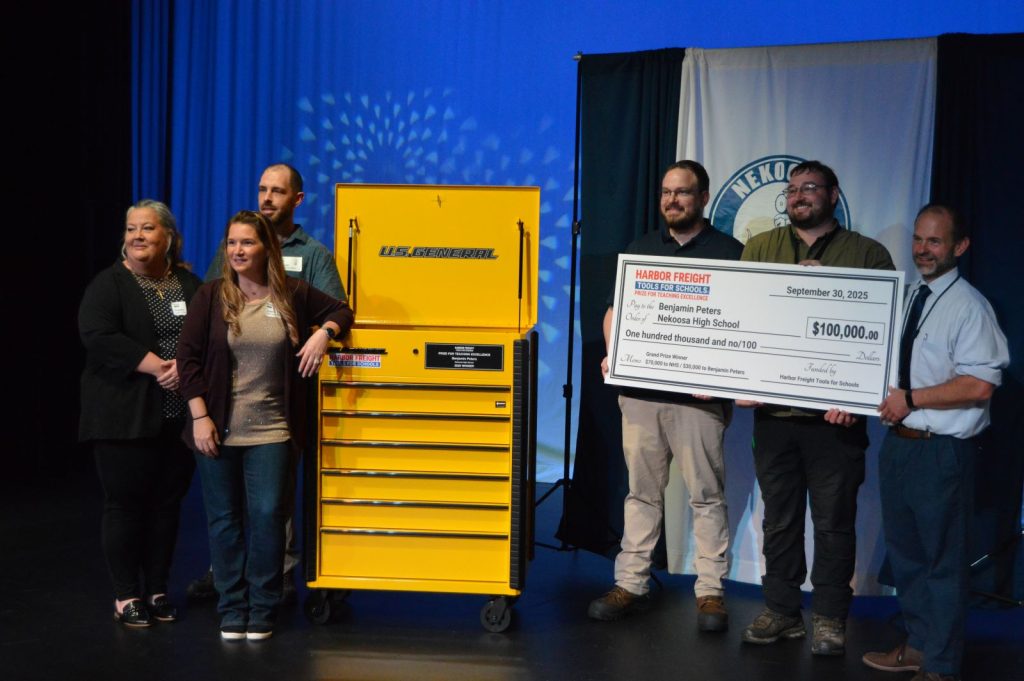 Nekoosa School District’s Tech Ed Teacher Benjamin Peters wins Harbor Freight Tools for Schools Grand Prize.