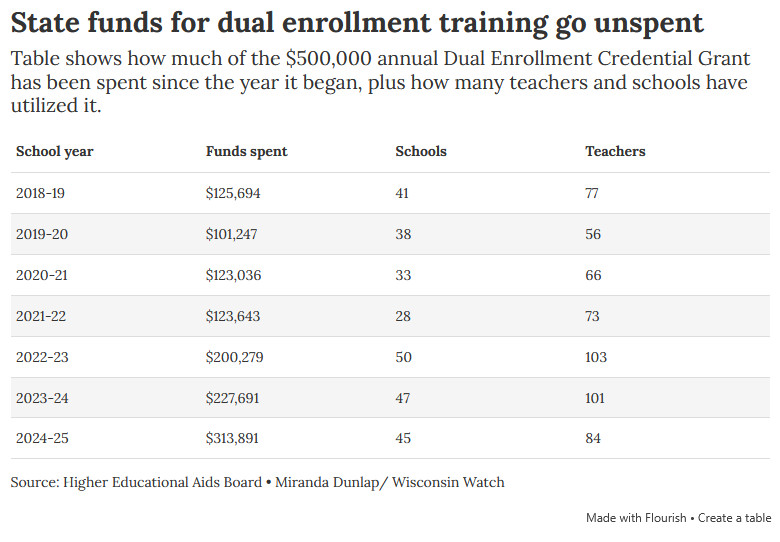 Wisconsin Watch talked to leaders in five school districts. All said the shortage of qualified teachers was one of the biggest barriers to growing their dual enrollment programs.