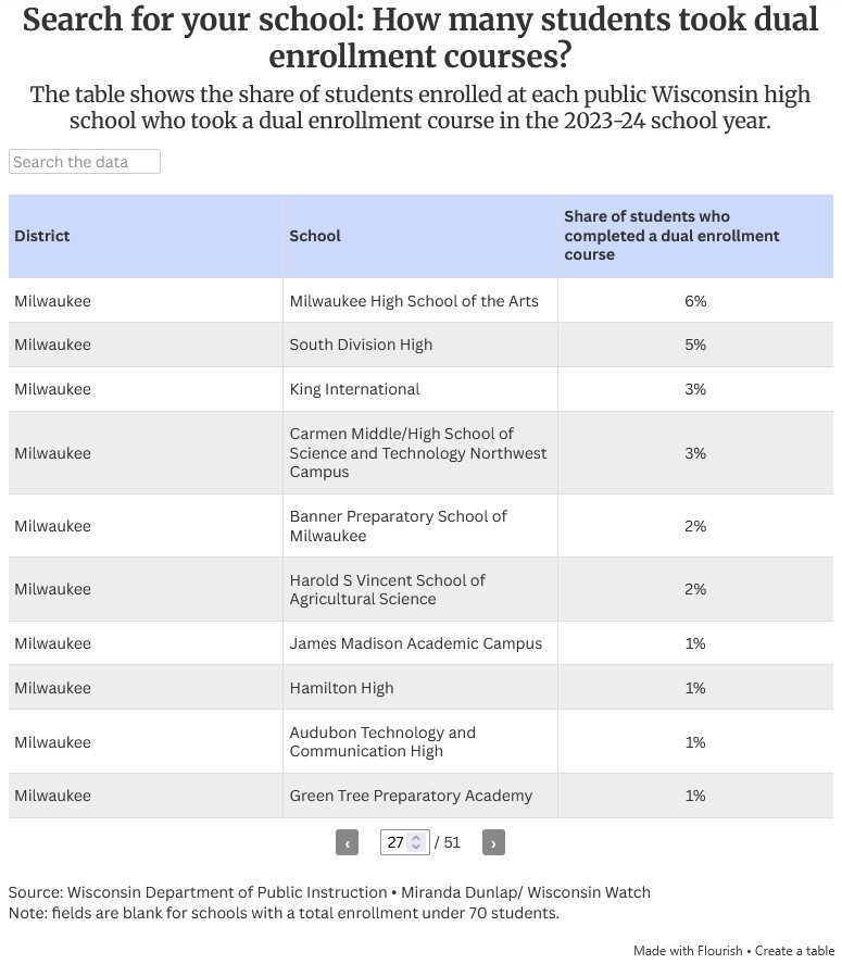 But not all students get these advantages. Many Wisconsin schools offer very few dual enrollment courses, or none at all. A July Wisconsin Policy Forum analysis showed small, urban or high-poverty schools are least likely to offer the classes.