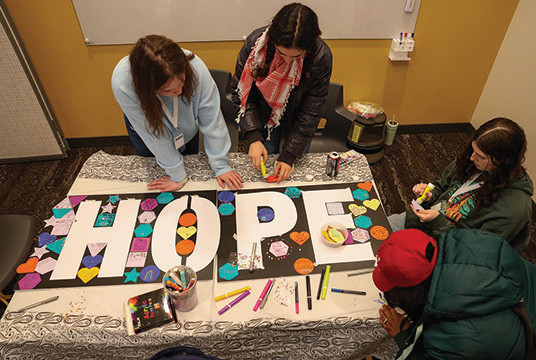 Members of the Milwaukee Public Library Teen Advisory Board work on their “Mural of Hope.”