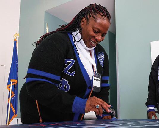 Patricia Lewis, a member of the Zeta Phi Beta Sorority, works on a community painting.