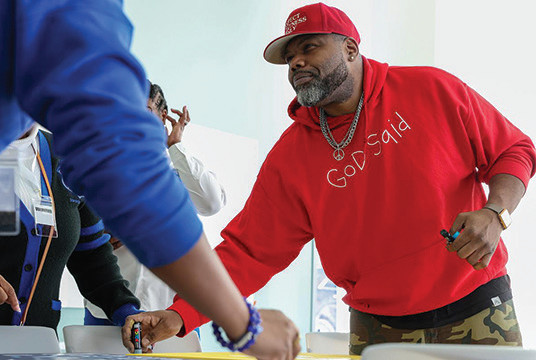 Terrell “EGO the Artist” Morgan works on a community art project.