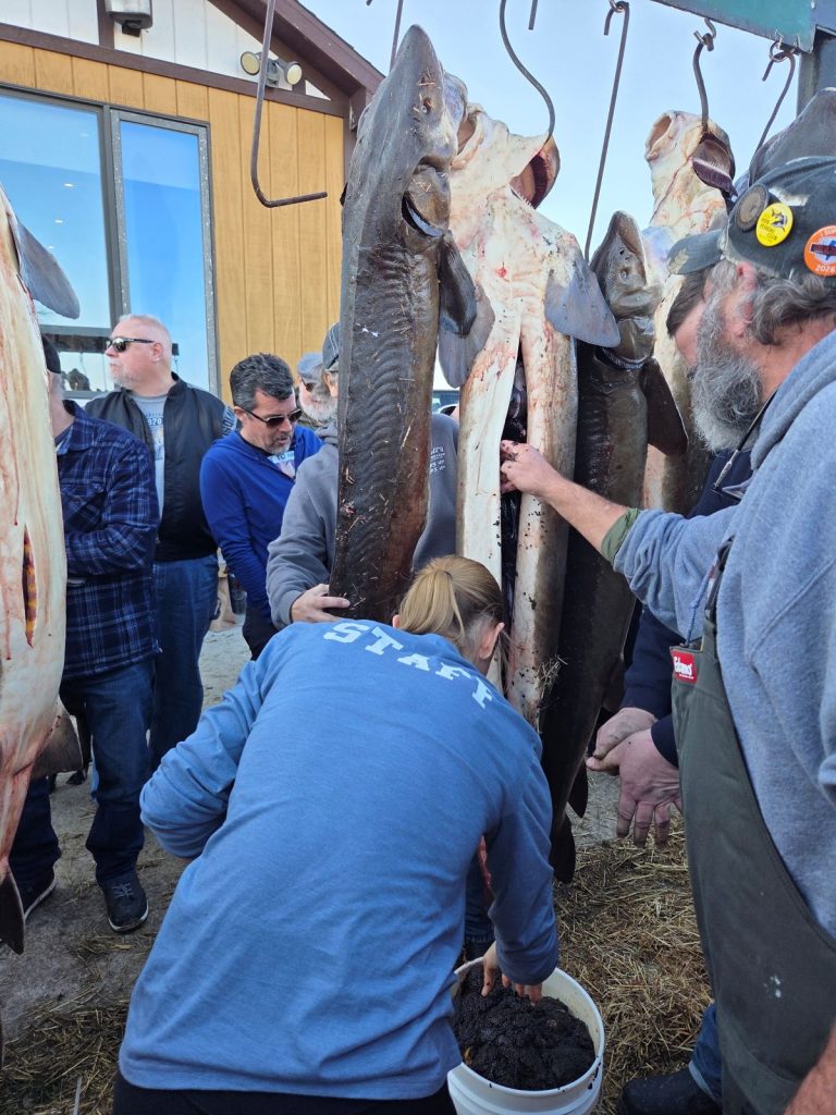 This is how sturgeon caviar is gathered. That’s a five-gallon pail of caviar.