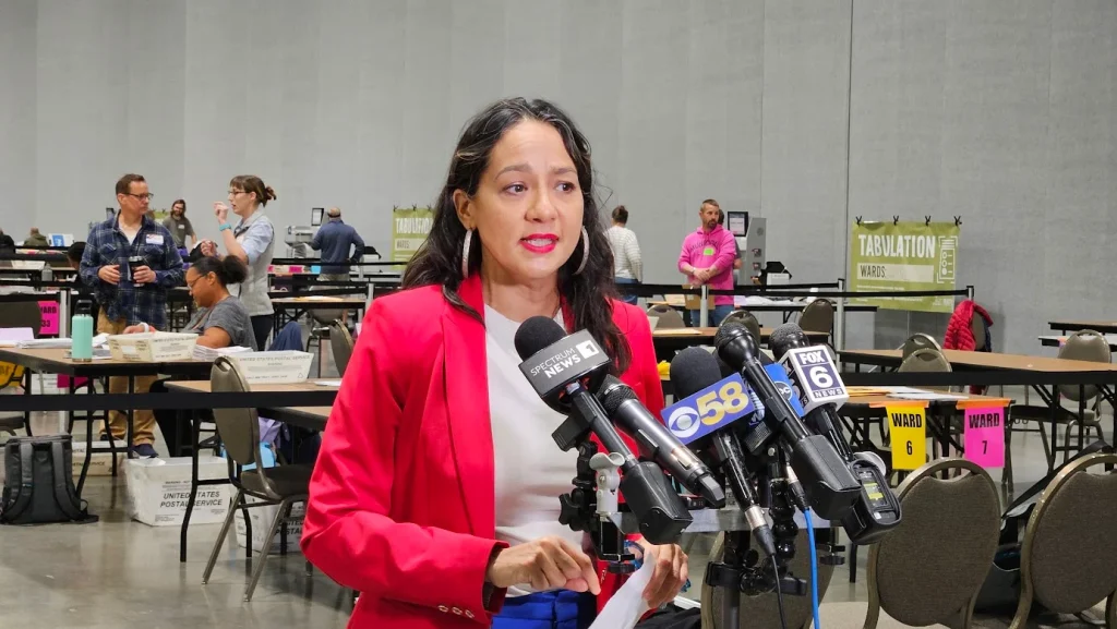 Gutierrez said her office is in constant communication with the Post Office, which delivered 20 ballots to election officials the morning of April 7, Election Day. After that initial delivery, Gutierrez said every time election officials checked with the Post Office throughout the day, the federal government’s mail service said they had no ballots. But then delivered 269 ballots the following morning.