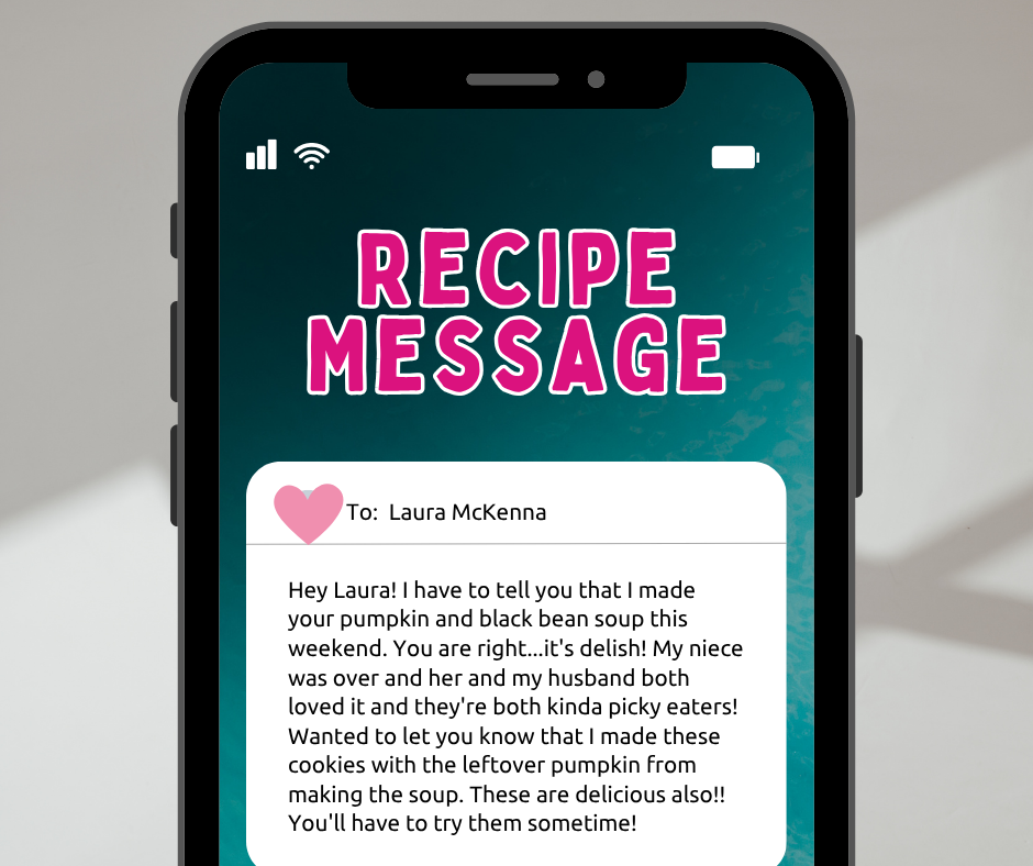 I knew you’d all love my new favorite soup. If you missed that recipe, CLICK HERE for Laura McKenna’s Black Bean Pumpkin Soup.
